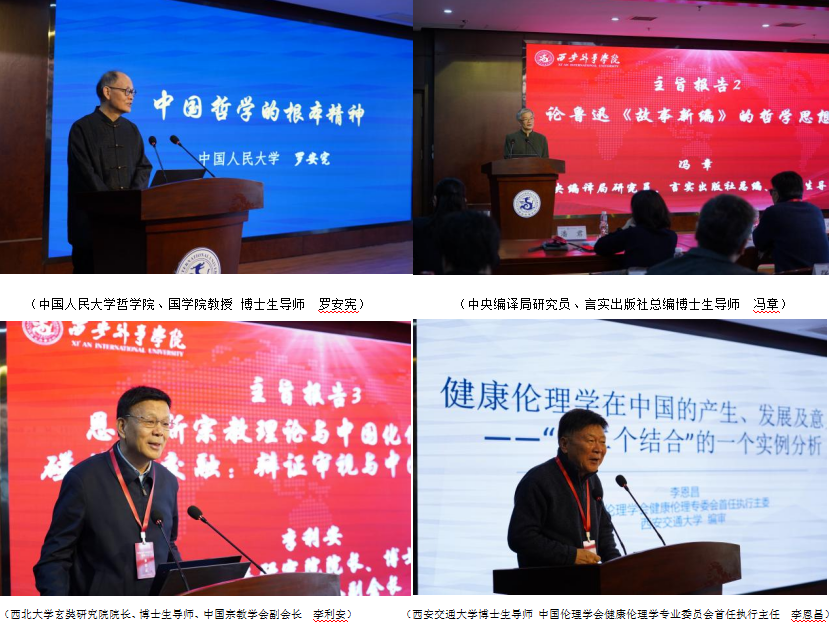 在上午场的主旨报告中,四位专家围绕“中国哲学精神”“文化经典诠释”“宗教理论融合”“健康伦理实践”展开深入探讨,多维度阐释“马魂中体”的融合路径。中国人民大学教授罗安宪以“中国哲学的根本精神”为题,从八卦理论到“穷理尽性以至于命”的奥义,揭示了中国哲学“安身立命”的核心使命。中央编译局研究员、言实出版社总编冯章以鲁迅《故事新编》为文本,结合马克思主义方法论,阐释了传统文化创造性转化的实践路径。西北大学玄奘研究院院长、中国宗教学会副会长李利安聚焦“恩格斯宗教理论与中国化佛教的碰撞与交融”,强调佛教文化作为中华传统文化有机组成部分的时代价值。西安交通大学教授李恩昌以健康伦理学为案例,论证了“两个结合”在交叉学科中的理论建构意义。