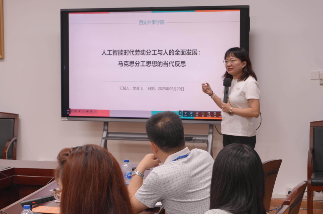 樊潇飞博士的发言《人工智能时代劳动分工与人的全面发展:马克思分工思想的当代反思》主要围绕劳动分工、马克思分工思想等关键词,系统分析了人工智能时代劳动分工的逻辑及实现路径,指出生产力的提高为人的全面发展提供了丰富的物质基础,突破了“旧式分工”的束缚,使人类社会从必然王国走向自由王国的趋势更加明晰。